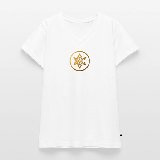 Frauen Bio-T-Shirt mit V-Ausschnitt "Heilige Kraft"