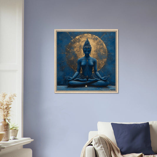 Die Indigoblau, goldene Tara / Meisterzhal 11– Die Quelle des Lebens & Meisterschaft Gerahmte Leinwand 60x60 cm / 24x24″